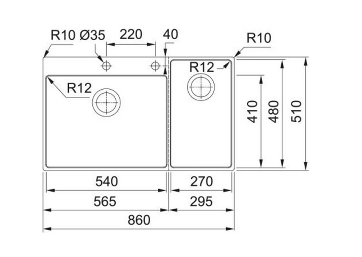 Franke Stainless Steel Sink BWX 220-54-27 TL WCR (860x510 Mm) 127.0538.259