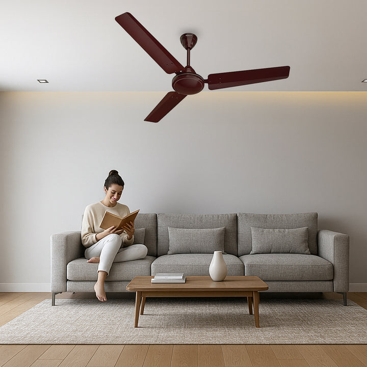 Experience powerful cooling with the Samraat ES Ceiling Fan. Powered by a 55W high-performance motor, it delivers strong airflow of 230 cubic metres per minute while maintaining energy efficiency.
