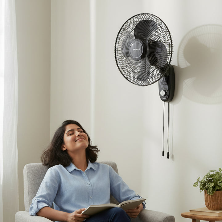 Discover powerful cooling performance with the Swing HS Wall-Mounted Fan, designed for homes and offices that demand comfort and efficiency. Powered by a 115W electric motor, it delivers rapid air circulation at 2350 RPM while maintaining a low 63.2 dB noise level for quiet operation.